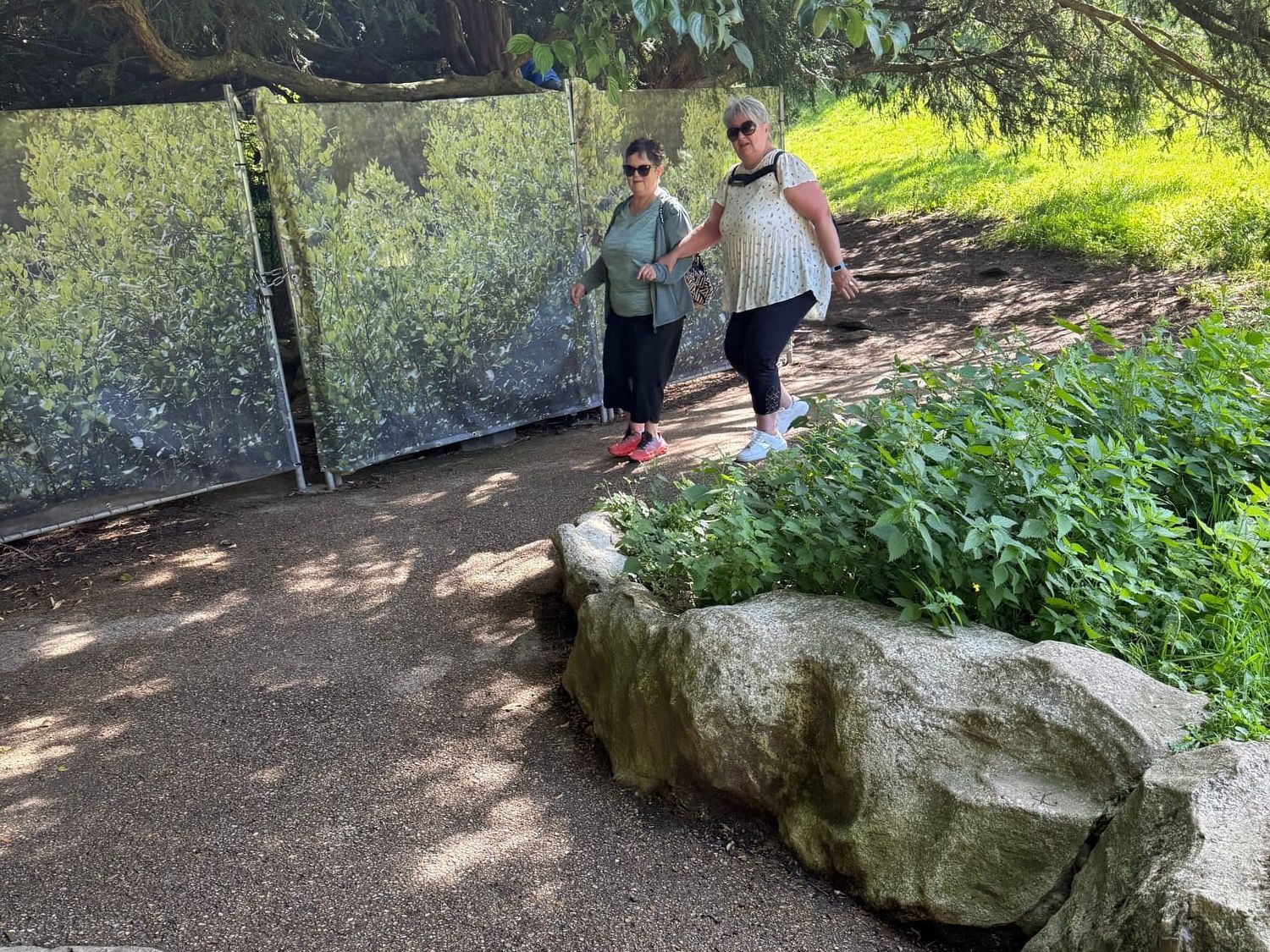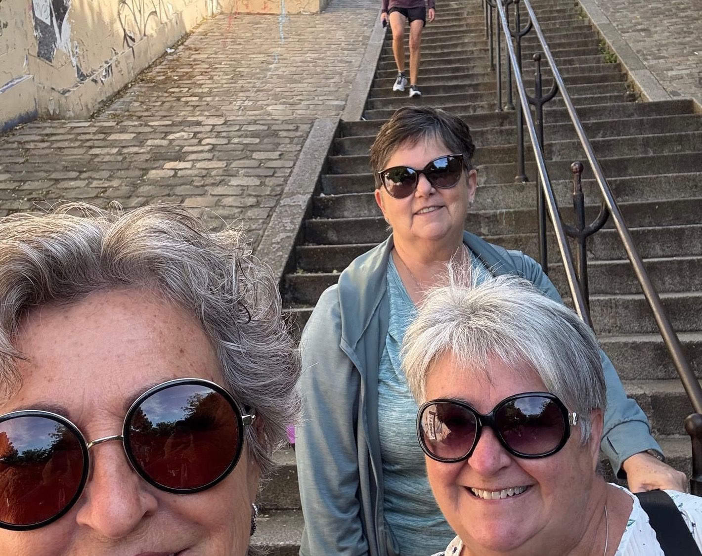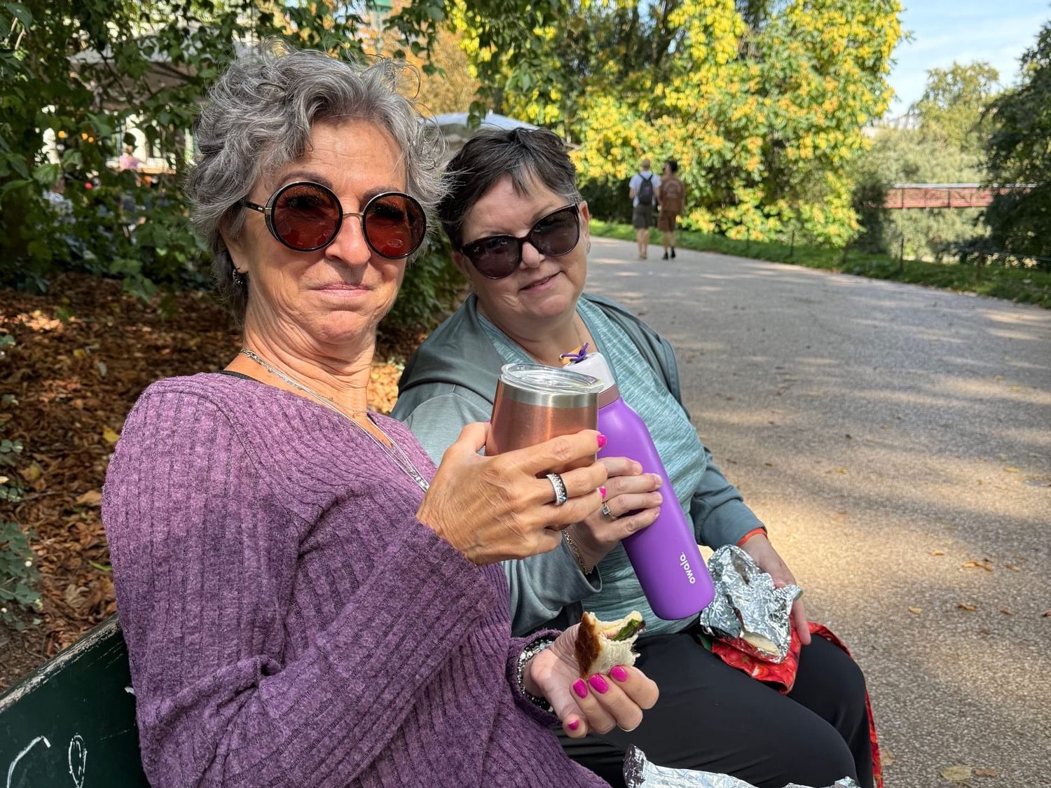 Arrivés en haut, mission critique : trouver un banc pour pique-niquer. On en aperçoit un… occupé. Un autre… trop au soleil. Finalement, après 20 minutes de chasse, un banc libre se profile. Victoire ! On déballe, on s’installe, on sort le vin, les sandwichs, les chips. Dans un élan de liberté tragique, France accroche la bouteille qui décide de se suicider sur le sol en éclatant en mille morceaux. Voilà, adieu le petit blanc bien frais.
